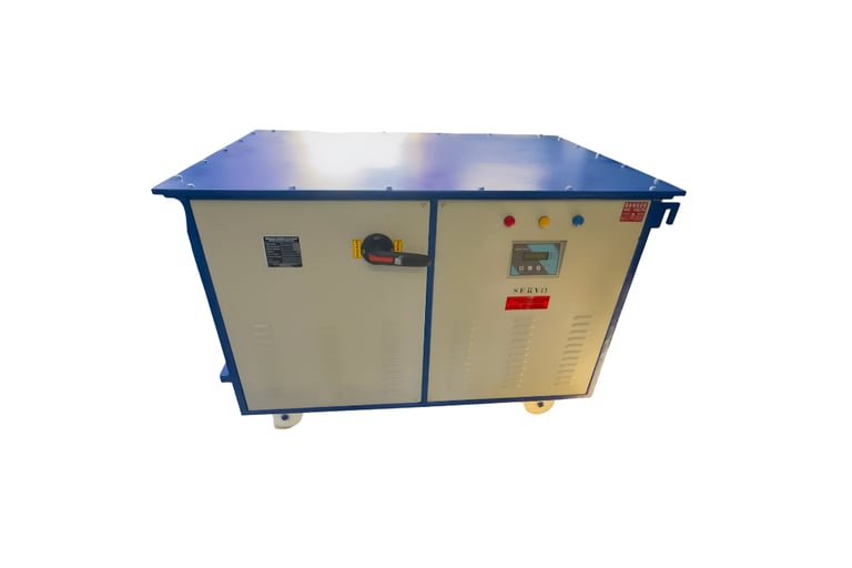 A 100 KVA Main Line Oil Cooled Servo Stabilizer is designed to control and stabilize voltage at your facility’s main power supply. It continuously monitors incoming voltage and automatically corrects fluctuations to deliver a steady output to all connected equipment. The oil-cooled mechanism ensures efficient heat dissipation, making it ideal for heavy-duty and continuous industrial operations.
